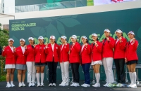 25일 서울 여의도 더현대 서울 사운즈 포레스트에서 열린 '2026 KLPGA 시즌 오프닝 세리머니(출정식)'에서 제18대 KLPGA 홍보모델 선수들이 포즈를 취하고 있다